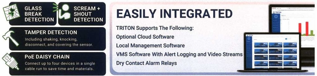 The device installs in minutes via Power over Ethernet (PoE+) and integrates with Milestone XProtect, Video Insight, and other VMS platforms. Alarms can trigger security protocols—like locking doors or dispatching staff—directly through existing systems.